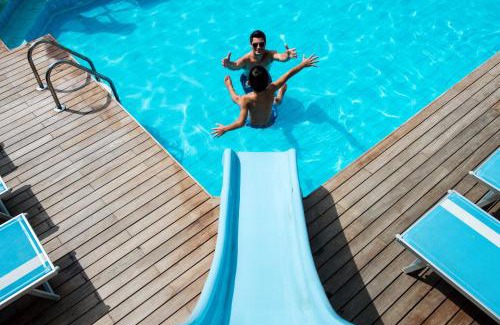 Located in Riccione, a few steps from Riccione Beach, Family Hotel Antibes -50m dal mare - has accommodations with a seasonal outdoor swimming pool, private parking, a shared lounge and a terrace. Featuring free bikes, the 3-star hotel has air-conditioned rooms with free WiFi, each with a private bathroom. The property has a hot tub, entertainment staff and a kids' club. Rooms contain a safety deposit box, while certain rooms come with a balcony. The rooms in the hotel are equipped with a flat-screen TV and free toiletries. The restaurant at Family Hotel Antibes -50m dal mare - specializes in Italian and Local cuisine. The accommodation has a playground. A selection of activities can be enjoyed on site or nearby, including cycling and water park. Family Hotel Antibes -50m dal mare - can conveniently provide information at the reception to help guests to get around the area. Oltremare is 2.3 miles from the hotel, while Fiabilandia is 2.6 miles away. Federico Fellini International Airport is 1.9 miles from the property, and the property offers a paid airport shuttle service.