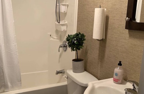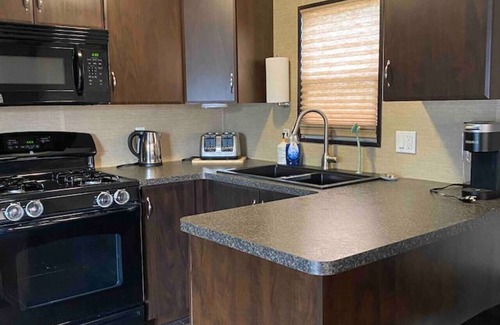 - 4 piece bathroom (toilet paper provided), kitchen with all your pots, pans, dishes, utensils, Keurig coffee maker, kettle, crockpot, toaster, basic cooking spices (paper towel, dish soap/brush, drying rack, hand soap, cleaning supplies provided).
