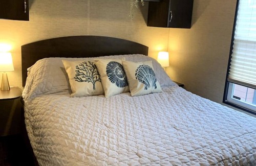 - Bedroom 1- queen; bedroom 2- Twin bunk bed (max 220lbs on top bunk), 1 double sofa bed in living room, 1 queen sofa bed in add-a-room. BRING YOUR OWN LINENS AND PILLOWS