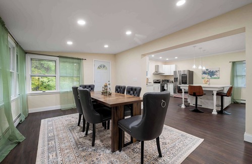 This home sits on a quiet country road in Sparrow Bush, offering a peaceful escape surrounded by nature. A short drive brings you to the Delaware River for water activities, and nearby Port Jervis offers local dining, shopping, and access to Metro-North for NYC trips.