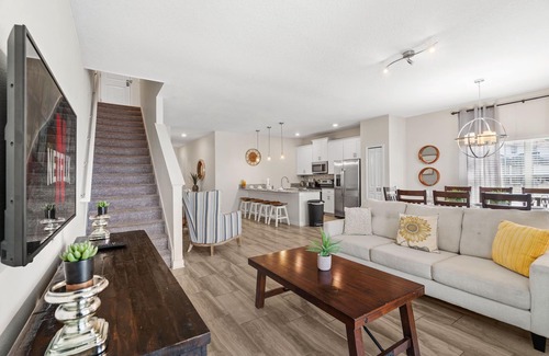 Embark on a magical family vacation just a short 10-minute drive from the gates of Walt Disney World Resort. Our charming townhome promises an unforgettable stay with its perfect blend of comfort and convenience. Boasting 5 bedrooms and a private pool, this spacious retreat is ideal for families seeking a home away from home.