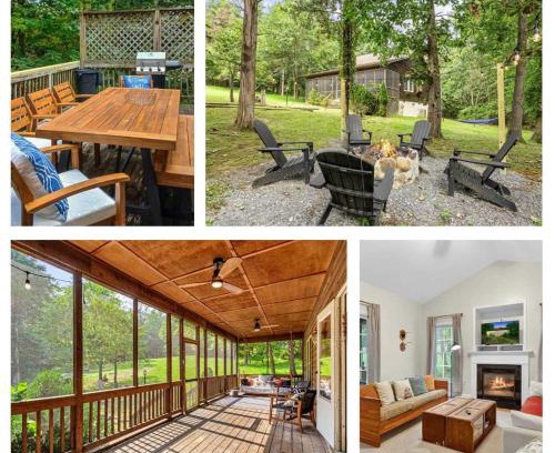Family Screened Porch with Swing Fire Pit Grill and Deck | House in Luray