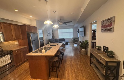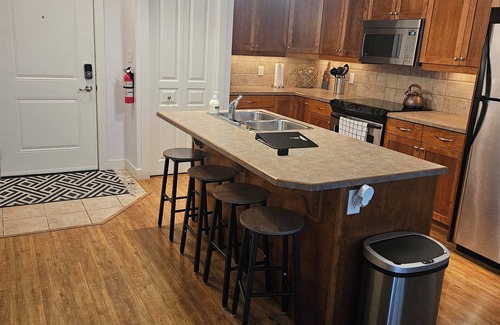 Nice cozy living area with lots of beds! Full size kitchen with everything you might need. Full laundry in suite.