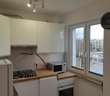Family Suite Świecie is located in Świecie, just 19 miles from Grudziądz Granaries and 24 miles from Myślęcinek Park. During your time at this recently renovated apartment, which dates back to 1975, you'll have access to free Wifi. Kochanowski Park is 27 miles away and Polonia Stadium is 28 miles from the apartment. This apartment includes 1 bedroom, a living room and a flat-screen TV, an equipped kitchen with a dining area, and 1 bathroom with a shower and a washing machine. Towels and bed linen are available in the apartment. This apartment is allergy-free and non-smoking. A mini-market is available at the apartment. Town Hall is 28 miles from the apartment, while Opera Nova Conference Center is 28 miles from the property. Bydgoszcz Ignacy Jan Paderewski Airport is 29 miles away.