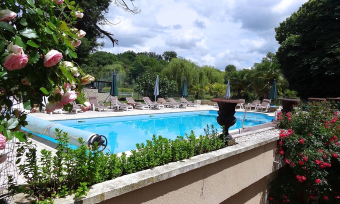Castle early 19th century, completely renovated, located at the crossroads of Touraine, Poitou and Berry, near (9 Kms) La Roche Posay (tennis, golf, casino, horse riding, spa) natural park of the Brenne (10 Kms), Futuroscope (50 Kms), the Beauval Zoo (60 km) of the Loire Valley (40 to 110 Kms). Large property in the center of a landscaped garden (peacocks, squirrels, etc ...) fully fenced 4. 5 acres with large pond (swans, ducks, fish, boat, etc. ...) trees (Sequoia, Ginkgo biloba etc. ..) large heated (15 x 6) with, inside the Castle pool: rooms (library, tv, fireplace, etc ...) games room (billiards, table football, table tennis, etc. ...) Wifi on 4 levels.