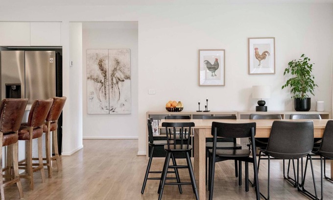 This new, spacious home sleeps 8 and is perfect for large families or two families. Conveniently located between Geelong (12 min's) and the Surf Coast, it’s just a 12-minute drive to 13th Beach and 17 minutes to Torquay! Open-plan living and kitchen area and features two TVs and 2 lounge areas, plus a large dining table. Outside, enjoy a covered BBQ area with seating, and plenty of space for kids to play on the grassy yard with soccer goals. A perfect retreat for both relaxation and adventure!