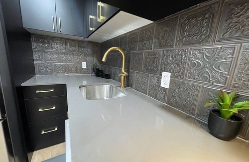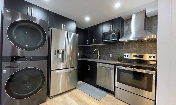 This impressive flat boasts the perfect combination of space, luxury, and location, located in lovely Lambeth area on a tranquil street. The beautifully refurbished 2-bedroom unit exudes sophistication and elegance, featuring a living room with a 75" TV mounted above a 72" electric fireplace, a modern kitchen complete with black cabinetry, gold hardware, and quartz countertops, a dining area accommodating 4 guests, an office desk, one full bathroom, and convenient double stacked laundry.
