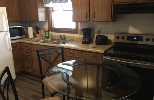 This charming 1-bedroom home is beautifully decorated and offers many great amenities including stylish furnishings and appliances (stove, refrigerator, microwave, washer/dryer, etc). It's located just off the Belt Highway near I-29 and 36 Highway. You’ll love my place because of the coziness, the cleanliness, the amenities, the quiet street, off-street parking, etc.