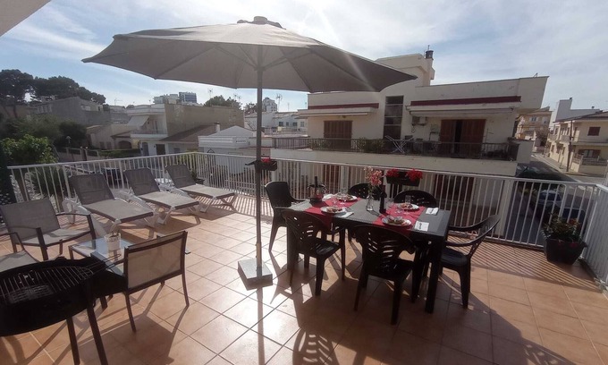 The location of the accommodation is perfect because everything you need is accessible on foot: the sandy beach, many restaurants, cafes, a pharmacy, drugstores, shops, supermarkets, bars, a taxi rank, a medical center and a bus stop . Take a walk along the Paseo Marítimo and sit down for coffee or homemade ice cream; Visit the port where you will find different types of boats. Boats leave from the port for the lighthouse of Formentor or Formentor beach. If you like sports, you can rent bicycles, windsurf or dive. In Can Picafort every Friday there is a market. The bus runs every 15 minutes in the direction of the town of Alcúdia, Puerto de Pollença or other directions, such as Palma. The sandy beach is 100 meters from the door of the accommodation; Just go down the street. This beach is perfect for young children since it doesn't have much depth or swell.