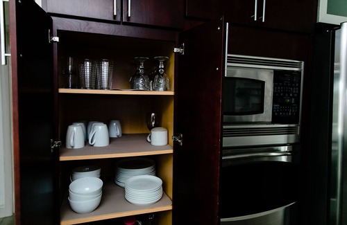 Right as you walk in, you are greeting by a large open space that holds the entrance, living room, dining room, and a fully stocked kitchen. With this great open space, everyone can be together without feeling cramped.