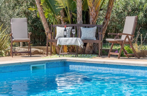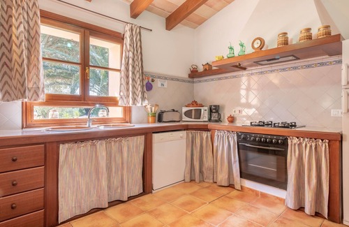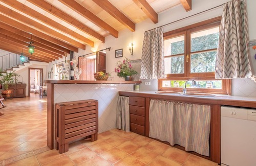 A few kilometres north of the village of Artà, you will find the Finca Allà d'Alt, which offers a wonderful outdoor area and excellent facilities. The beautiful Finca with natural stone façades has a cosy living/dining room with a fireplace and a stone wall, a very well-equipped kitchen with a counter, 3 bedrooms (2 with a double bed, one with 2 single beds) as well as 2 bathrooms (one of them with a jacuzzi bathtub) and can therefore accommodate 6 people. Amenities also include Wi-Fi, a TV, a fireplace, a baby cot and a high chair. The absolute highlight of the fantastic outdoor area is the 60 m² pool, which is equipped with a Jacuzzi. The spacious, well-kept garden of the accommodation enchants guests with blossoming bushes, lush vegetation and its own tree population - here you can be one with nature and leave the stress of everyday life behind you. Several paved outdoor terraces with comfortable seating invite you to enjoy delicious meals in the company of your loved ones or to round off a sunny holiday with a glass of delicious wine. The old well of the property provides a particularly original atmosphere - experience the rural flair here up close and enjoy a maximum level of privacy! There are cats, goats and a donkey on the property, which is a great attraction especially for children. A selection of shops, restaurants, bars and cafés can be reached in Artà after 4.3 km or a 9-minute drive. There is a weekly market on Tuesdays which is well worth a visit and where you will find culinary delicacies and Mallorcan handicrafts. The nearest sandy beach, Cala Torta, is 14.5 km or a 30-minute drive away and awaits you with an absolutely natural, almost undisturbed environment.