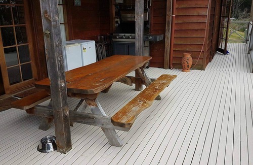 Spectacular wooden 3 bedroom house on 45 acres, situated 3 minutes drive from the main road up the Snug valley(turn off opposite the Snug Store). A dream entertaining house with a fully equipped kitchen, lounge and dining areas opening up to the BBQ deck. Very private with only the sounds of birds and hopping of wallabies to listen to. Fresh eggs in abundance as have chickens on property.