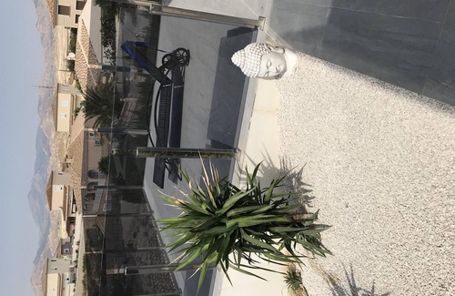 The villa is located near Busot, a small, traditional mountain village with narrow streets and a population of 3,000. The center of the village is the charming little square with the beautiful old town hall, the parish church and some restaurants with terraces. In Busot you will also find a bakery, a butcher, a post office, a pharmacy and a health center. Within 9 km you can reach the popular coastal town of El Campello, which offers excellent "blue flag" sandy beaches and restaurants. The beautiful Muchavista Beach of San Juan is just 10 km away. You will find the Bonalba Golf Course at 7 km and Alicante Golf at 11 km. The provincial capital of Alicante is 18 km away and El Altet International Airport can be easily reached via the A70 motorway, with a journey time of approximately 25 minutes. We recommend that you rent a car during your stay.