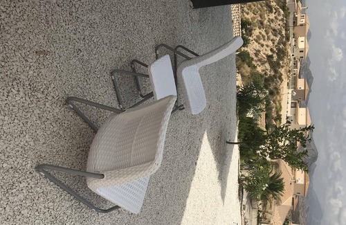 This fantastic, architect-built villa offers beautiful views of the coastline of Alicante and breathtaking views of the mountains of the Sierra Carrasqueta and the Sierra Maigmo. The large windows give a feeling of immeasurable space and light. There are 4 bedrooms that can accommodate up to 8 people and 3 bathrooms. The villa has a large L-shaped infinity swimming pool of 42 m2, various terraces and a garden with herbs and lemon, orange, fig and palm trees (total plot size 1000 m2). The bedrooms have comfortable box springs and the bathrooms are equipped with a shower room with rain shower, toilet and washbasins. On the ground floor you will find a fully equipped kitchen, a spacious living and dining room, a master bedroom with a king-size bed, a bathroom and a separate room with a guest toilet. On the first floor you will find another master bedroom with a king-size bed, a walk-in wardrobe and a spacious bathroom. Bedroom 3 and 4 with 160-200 beds, a 3rd bathroom and a large terrace are also located on the first floor. The house is air-conditioned and is fully equipped with a fridge, freezer, induction hob, dishwasher, oven, espresso machine, food processor, washing machine, hairdryer, WiFi, TV, Blu-ray player and gas barbecue. The villa was completed in May 2018.
