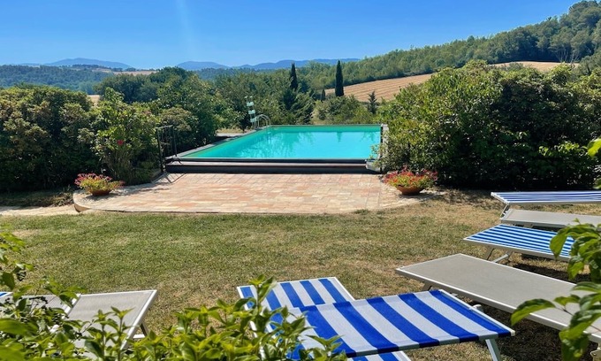 Fantastic panoramic views - exc villa, pool + grounds - pool house - 12 guests | Villa in Umbria