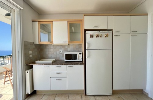 The penthouse has been furnished with attention to detail and style that will make your stay an unforgettable experience. It consists of two (2) bedrooms, one sofa room, an attic (optional 2 extra beds can be provided ) with a private balcony and full barbecue, two (2) complete bathrooms, a spacious living-room with a dining table seating eight (8) and a large sofa facing the fireplace. The large kitchen is fully equipped, including ceramic stoves, oven, dishwasher, washing machine, fridge and freezer, coffee-maker, microwave oven, toaster and juice-maker. Central heating, fast 100 Mbps Wi-Fi and flat-screen TV are included. The living-room, kitchen, master bedroom, sofa-room and the attic, all have access to verandas with stunning view over the Saronic bay and sea where the eye can travel.