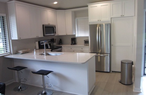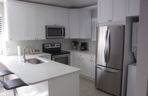 Comfortable , newly renovated 2bed/2bath open plan club cottage with views of pond fountain and golf course beyond. Non-Smoking, no pets. This 1143 sq feet, 1-story cottage in PGA National gated community is perfect for enjoying the PGA season; Cognizant Classic; Baseball spring training; or your favorite foursome of golf or fishing trip. This Club cottage has tile floors throughout. The newly renovated Kitchen has white cabinets and stainless steel appliances fully equipped for cooks. The master has a king bed with new ensuite walk in shower bath. The guest bedroom has 2 queens allowing for extra visitors. 400 count Linens/towels/ beach towels provided. Hair dryers in each bathroom. Flat screen TVs located in each bedroom with a 55" TV and DVD in the living room. Cable and wifi internet service throughout. Enjoy grilling with gas on your outdoor patio while enjoying the fountain water views with The Staple golf course in the distance. The private community pool is a short walk away with its own bathrooms.