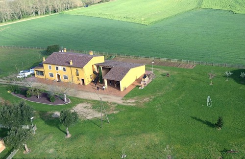 Modern farmhouse with five double rooms and large areas to enjoy, relax and take a dip in the pool.