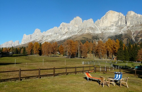 Our cottage is situated in the south, sunny and quiet location and invites with its beautiful views of the Dolomites mountains Rosengarten and Latemar to unwind and relax a.