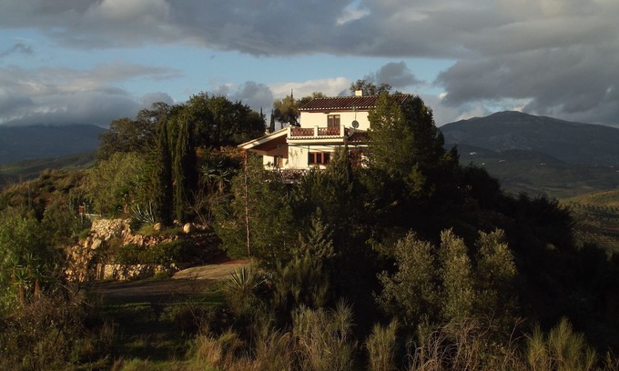Two-storey villa located on a hill overlooking Comares. One hour from Malaga airport, the last meters: 500m concrete driveway 200m dirt road,also accessible with small cars. Have a look at Googel Earth to explore surroundings of this villa. It is very interesting..