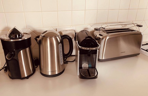 As you settle into this 2-bedroom, 2-bathroom rental, you'll find a living room, a dining area, a safe, and air conditioning. Bathroom amenities include a hair dryer, a bidet, and towels. The kitchen is equipped with an oven, a stovetop, and a refrigerator, as well as a coffee maker, an electric kettle, and cookware. And you won't have to pack extra clothes, because you'll also have access to laundry facilities.