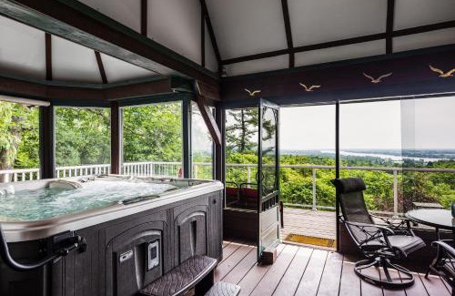 Far Horizons Luxury Vacation Home is a 4-bedroom fully equipped villa located in Montebello. The villa features panoramic mountain views. The property is 1 hour’s drive from Mont-Tremblant, 1 hour from Ottawa, and 1 hour from Montreal. The living area features a unlimited wifi, smart TV's, in living area and in all bedrooms, DVD player,, sofa and fireplace. A fully stocked kitchen allows guests to cook their own food on site. A mini-bar, barbecue and dining area are also provided. The kitchen is well stocked, and also equipped with fridge/freezer with water/ice attached; stove with convection oven; air fryer and toaster oven, Keurig and 14 cup Cuisinart Coffee Brewer; Dishwasher and Microwave. Guests can enjoy the impressive mountain and river view from any bedroom; from the full length of house deck; from the terrace, balcony and patio. An enclosed 8-person hot tub is featured in the Spa Room on the property. The air-conditioned Far Horizons Villa also offers laundry facilities and free on-site parking for added convenience. Free unlimited WiFi is available. Far Horizons Luxury Home is 1 hour’s drive to Ottawa. The villa is also less than 10 minutes’ drive from Fairmont le Chateau Montebello and 15 minutes’ drive from Omega Park. There are many unique shops in the area; great hiking; skiing within one hour (Mont Tremblant); and white water rafting and other activities within an hour. Activities at the Chateau Montebello is available for pay as you go rates.