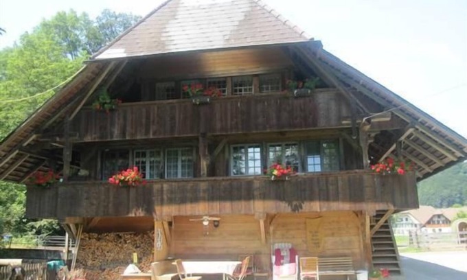 Discover the unique opportunity to stay on an almost 400-year-old farm that combines traditional charm with modern comfort. Our lovingly renovated colour house on the second floor of the Stöckli offers a cosy 1-room flat with a double bed and an optional extra bed, a small kitchen with microwave and small oven, WC/shower and a large covered arbour that invites you to linger. For larger groups, an additional 3-bed room is available one flight of stairs higher up.
