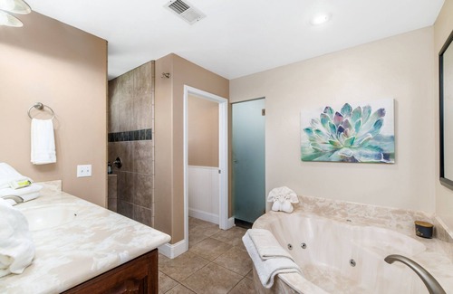 Get ready to enjoy a lazy afternoon on the Farmhouse porch as you take in the sounds of nature. After a leisurely morning, spend the afternoon hiking on one of the many famous hiking trails nearby. Work up an appetite conquering Potato Chip rock and then settle into the afternoon with an invigorating swim in the pool or relax in the hot tub and gaze at the stars. If you enjoy golf, visit the captivating golf course at Mt. Woodson Golf Club or San Vicente Resort and Golf Club. Many unique and wonderful wineries dot the neighborhood and offer many local estate wines that are like no other. From the house it is possible to stroll to Principe di Triscase, Hacienda de las Rosas, Cactus Star Vineyard and Woof'n Rose. There are more than 30 wineries located within a 10 mile radius, making wine tours and tasting adventures easily accessible. While Ramona feels like you are a world away from civilization, you are within a 40 minute drive of any and all of the attractions within the greater San Diego area. This is a lovely jumping off point to visit the San Diego Zoo, Sea World, Lego Land, The Safari Park, Balboa Park, Gaslamp, Del Mar and La Jolla Beaches, Coronado or apple picking in Julian.