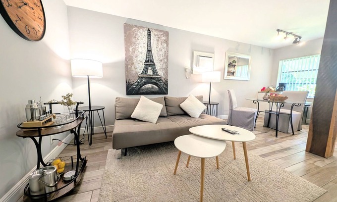 Indulge in a peaceful retreat at our charming farm-style abode, centrally located within a mile of sandy beaches and a short walk to downtown and Bryant Park. Enjoy a tranquil courtyard perfect for alfresco dining and grilling, plus a bar cart with a full mixology set for craft cocktails. Luxurious bathrobes and disposable slippers add a spa-like touch. Whether for a romantic getaway or family vacation, relax and recharge while exploring the hidden gem of Lake Worth and the best of Palm Beach!