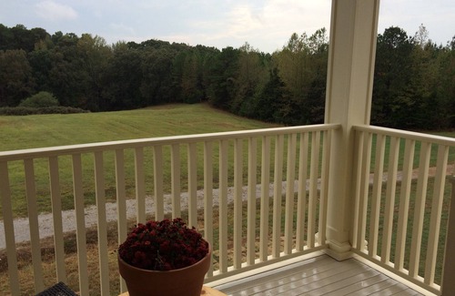 Tucked just outside of town, our guesthouse is an easy 5.5 mile drive to the square. Brand new construction with everything you need for a fun getaway. You'll love the peaceful setting and scenic background of Woodson Ridge Farm and the occasional live music coming from their nearby party barn. There are two Queen bedrooms, one shared bath, a cozy living room and a fully equipped kitchen (minus dishwasher). Enjoy your morning coffee on the balcony overlooking the national forest. Owners live in main house just next door so are readily available for any questions/concerns.