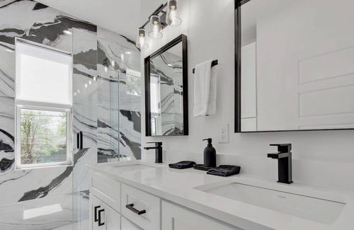 Guest Bedroom with Full Size Bunk Beds + Shared Bathroom