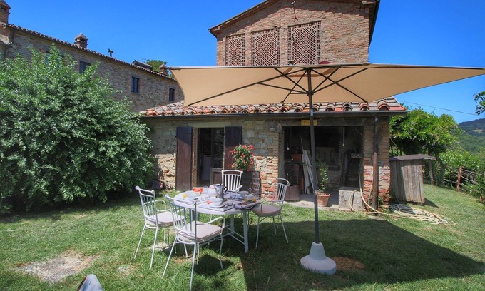 Why stay here? This picturesque farmhouse is located in Umbertide in Umbria. Perfect for a peaceful getaway with your family or a group of friends, you can enjoy a hot barbecue in the garden admiring the scenic views on an autumn evening. You may bring 2 pets here. Things to do around Monte Santa Maria Tiberina offers a series of itineraries created as part of the project "Feuds, castles and villas. Do make sure to visit the medieval village of Citerna, registered in the list of 'The most beautiful villages in Italy.' Lake Trasimeno Regional Park offers numerous museum centers and environmental education centers. The Monte Cucco Regional Park offers a wide range of activities: from canyoning to hiking, hang gliding, paragliding, cave experiences. What to expect from the space This child-friendly farmhouse offers bicycles. A washing machine is also in place. More for your stay Perugia Airport lies 32 km away. Check-in and check-out timings are 2-8 PM and 8-10 AM, respectively.