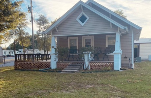 Come relax and enjoy the breathtaking lake views in this vintage Farmhouse on Grand Lake. 3 bed 1 bath. Fully handicap accessible home, stocked with basic kitchen necessities. Washer and dryer available for renter use. Great wrap around deck, fenced yard (please note this isn't fully fenced), and covered carport. Boat ramp across the road. Covered parking for 3 vehicles, with electric available under carport. This is a great location for fishermen and their families. There is even a Mexican restaurant on the water just a 2 min walk down the road.