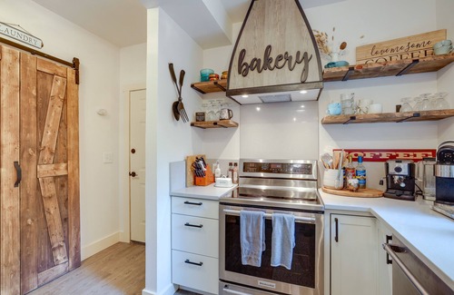 KITCHEN: Breakfast bar w/ seating, dishwasher, refrigerator, stove/oven, microwave, Keurig, drip, & pour over coffee makers, french press, coffee grinder, tea kettle, blender, air fryer/toaster oven, slow cooker, ice maker, spices & oils, cooking basics, dishware & flatware, wine glasses, baking sheets