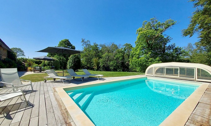 This charming longère (farmhouse), situated on the edge of the ocean between sea and countryside, has been restored with respect for tradition and authenticity, using natural products to rediscover its soul of yesteryear. Every item has been carefully selected for your comfort and well-being, for short stays or long vacations. Set in a serene, soothing hamlet, you'll find the covered, heated swimming pool in the heart of a landscaped garden. Everything you need for a great time with family and friends.