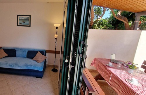 Faro offers a nice sea view from its covered balcony perfect for socializing with a grill. This one-room apartment features one bathrooms and a living room convertible into a bedroom with a fold-out couch accommodating two, hosting up to five people. Air-conditioned, fully equipped, and well-furnished, it's nestled in a tranquil street in the city center, ensuring a comfortable and memorable stay.