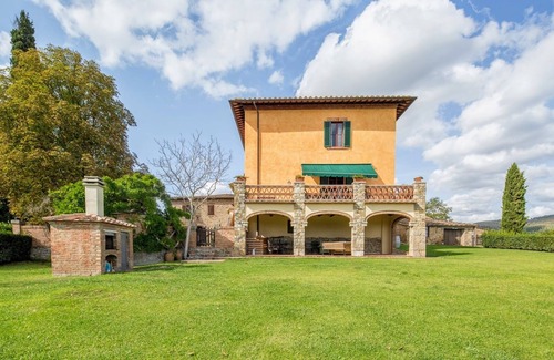 Classic manor, 350 sq. m., located in a farm in a panoramic location, with a large garden and private swimming pool. The house has 5 double bedrooms, 3 bathrooms and can host up to 10 guests. You will find Wi-Fi, satellite TV and a furnished loggia for outdoor meals, as well as for relaxing and enjoying the peaceful countryside.
