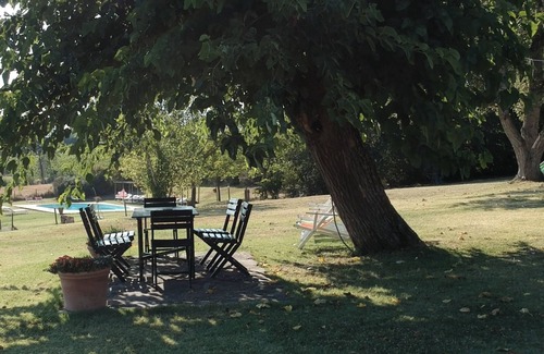 Outside, a small pergola covered with Fragola grapevines provides a private table and a barbecue. The apartment has direct access to the garden and is approximately 50 metres from the swimming pool. It is situated within the farmhouse, surrounded by the estate’s vineyards and fields.