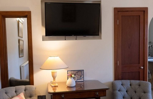 Amenities: Underfloor heating to bathroom. Microwave, fridge, coffee machine, toaster, hairdryer. Smart TV, WiFi. Fuel and power inc. in rent. Bed linen and towels inc. in rent. White Company toiletries. Off-road parking. Communal garden with lawn, furniture, barbecue, and exclusive access to walled garden. Pet-friendly. Sorry, no smoking. Shop 1.8 miles, pub 0.5 miles, River Test 0.2 miles. Note: This is an adult only property, unless the booking is for a wedding; in this case, child facilities can be requested. Note: Continental breakfast hampers and meals can be pre-arranged at a fee. Note: Guests have access to on-site fishing, which must be pre-booked. Note: There is an on-site teamroom, open April to September, offering 20% discount for all guests. Note: There are no window views in this property and is only suitable for a short stay. Note: Guests also have free access to Houghton Lodge Gardens, between 1st April and 30th September. Note: There is no oven or hob in the property. Note There is a communal freezer for ice. Note: Charcoal is not provided for the barbecue. Note: Free access to the garden from 11-5pm throughout the year. Note: Free access to the walled garden in the evening. Note: Early morning riverside walk. Note: Close proximity to local pub, The Boot