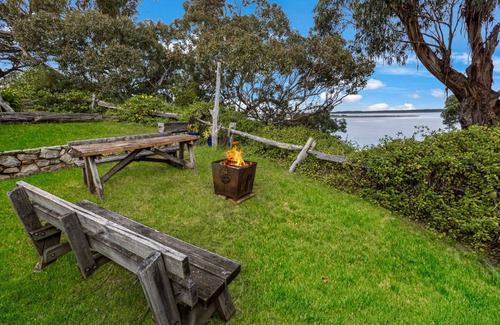 Perched above the picturesque Gippsland Lakes, the cabin features a fully equipped kitchen and a deck with stunning lake views for you to enjoy. The property has a BBQ area and fireplace facilities (byo wood). If you’d like to get out on the water, you can take advantage of a private jetty, complimentary kayaks for guests, and a boat ramp suitable for small craft.