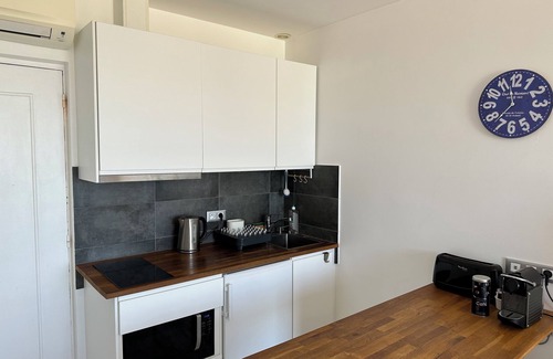 Feet in the water, the view of the beach and the sea is located in Villeneuve Loubet Beach. Feet in the water, the view of the beach and the sea provides accommodation, featuring Parking, Child Friendly, TV, among other amenities. This Apartment features Parking, Child Friendly, TV, to make your stay a comfortable one.