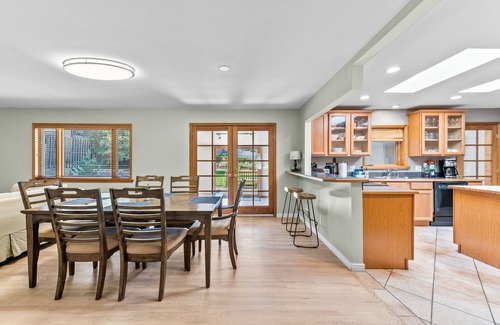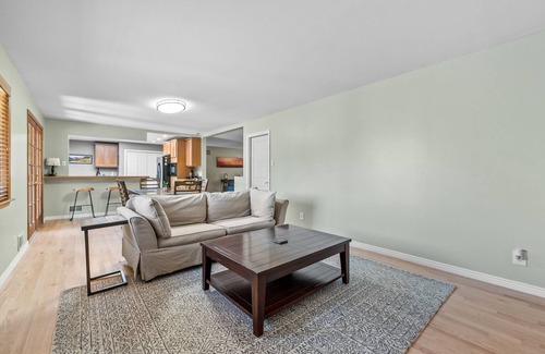 Escape to serenity in this tranquil retreat, perfectly blending comfort, relaxation, and outdoor adventure. Ideal for small families or two couples, this haven offers a peaceful getaway from the hustle and bustle. Located in Bel Air, Wheat Ridge's hidden gem, you'll unwind in serene surroundings, enjoying comfortable living spaces and scenic views. The main bathroom boasts a luxurious glass shower, while dual living areas provide ample space for relaxation and entertainment. The heart of the home is the well-appointed kitchen, complete with a kitchen island and breakfast bar seating, perfect for culinary delights. Unwind on the welcoming front porch, back sunroom, or spacious back deck featuring outdoor dining and lounging areas, and enjoy outdoor activities like grilling and cornhole in the lush yard.