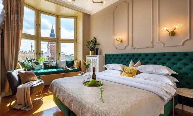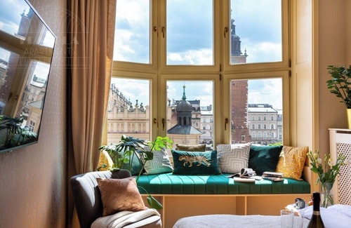 Feniks Jade apartment on the Main Square with a unique view. From the high windows of the apartment you can admire the entire Market Square and the Cloth Hall. The apartment has 2 separate bedrooms, so it is a great choice for a family trip or a vacation with a group of friends.