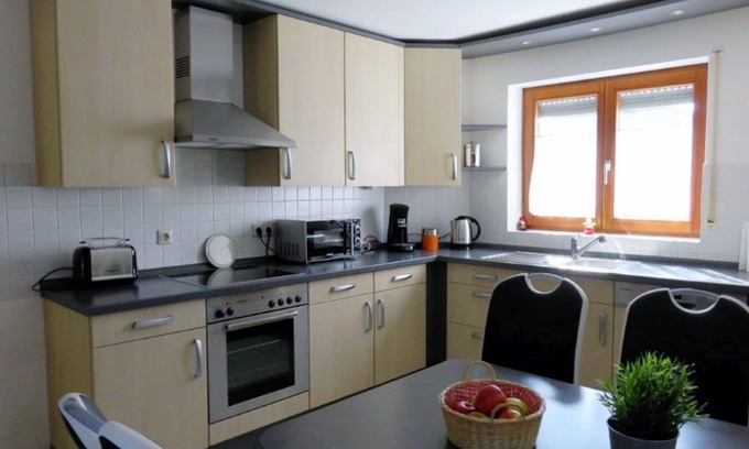 Unser gemütliches Ferienhaus hat eine Größe von ca. 110 m2, verteilt auf 3 Stockwerke. Es wurde 2017 fast komplett neu eingerichtet und hat 4 Schlafzimmer, welche sich in den oberen Stockwerken befinden (1 Doppelbett, 1 Einzelbett und 2 x 2 Einzelbetten). Im geräumigen Bad sind Dusche, Badewanne und 2 Waschbecken mit Spiegelschrank. Ein separates Gäste-WC. Die Küche ist komplett eingerichtet mit Spülmaschine, Kühlschrank, Herd, Kaffeemaschine, Mikrowelle, Toaster, Wasserkocher und Geschirr. Das Wohnzimmer ist ca. 30 m2 groß, bietet Platz für gemütliches Beisammensein, es steht ein 40-Zoll Fernseher, DVD-Player, Stereo-Anlage und Internet bereit. Im Sommer kann die Terrasse mit angrenzendem Garten zum Grillen genutzt werden. Erholung garantiert, da Haus mit Terrasse und Garten exklusiv für den Gast nutzbar sind, d.h. keine weiteren Gäste oder Vermieter im Haus. Ganz in der Nähe (ca. 50 m) finden Sie Arzt, Zahnarzt, Physiotherapeut, ca. 100 Meter bis zum nächsten Bäcker/Edeka.Für den kleinen Hunger gibt es eine Pizzeria und ein Döner.