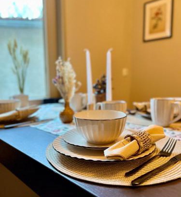 Food & DrinkTea/Coffee makerBathroomPrivate bathroom, Slippers, Toilet, Towels, Toilet paper, Hairdryer, Bathtub or shower, ShowerMedia & TechnologyStreaming service (like Netflix), TV, Flat-screen TVKitchenKitchen, Electric kettle, Kitchenware, Coffee machine, Dining table, Stovetop, Refrigerator, Cleaning products, Wine glasses, Oven, Toaster, Microwave, KitchenetteOutdoorsBalconyLiving AreaDining area, Sitting area, SofaGeneralTrash cans, Key access, Hypoallergenic, Carpeted, Heating, Smoke Alarm, Private entranceViewView, Quiet street view, City view, Inner courtyard viewBedroomChildrens' cribs, Linens, Wardrobe or closetAccessibilityUpper floors accessible by stairs onlyBuilding CharacteristicsDetached, Private apartment in buildingRoom AmenitiesSofa bed, Non-feather pillow, Drying rack for clothing, Clothes rack, Socket near the bedEntertainment & Family ServicesBoard games/puzzles |
