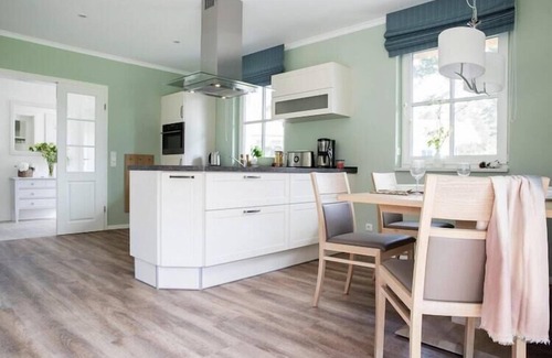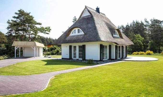 Luxurious thatched roof house in a very idyllic location on the lagoon, just 100 meters from the water. Enjoy your vacation right from the start and relax in the sauna or in front of the fireplace. Wi-Fi and satellite TV with Sky provide variety. In the summer months you can relax in peace and quiet at the natural swimming area - just 170 meters away on the Bodden waters or take a trip to the lively Baltic Sea beach in Zingst, which is 17 kilometers away. Around the lagoon, picturesque villages and a unique landscape are waiting to be discovered by you. The communities of Fuhlendorf and Bodstedt are very idyllic on the southern Bodden coast. In the warmer seasons, passenger ships travel daily from Bodstedt to the Darß peninsula to Born and on through the Neuendorfer Bülten to Ahrenshoop-Althagen. Highlights included: All consumption-based energy costs, bed linen and towels sauna WIRELESS INTERNET ACCESS Firewood (initial supply) Activities nearby: The small neighboring community of Bodstedt with its traditional harbor is known for the Zeesen boats based there. Individual owners of Zeesen boats offer rides and you shouldn't miss an opportunity like this! The big Bodstedt Zeesenboot regatta has started on the first weekend in September every year since 1965.