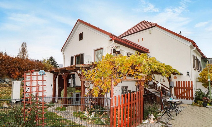 This holiday gem impresses with a large and quietly situated plot in the beautiful municipality of Rechnitz. Your four-legged friends are also very welcome and can make wonderful use of the large fenced garden. The lovingly furnished holiday home offers several separate bedrooms and a balcony with a fantastic view over the well-tended vineyards and apricot trees of Rechnitz. At the foot of the Geschriebenstein, you and the whole family can enjoy a wonderful and relaxing time together. The nearby nature park offers numerous nature experiences for young and old. There is also plenty of culinary delights in the wine taverns, and the wines are regularly honoured at wine awards.
