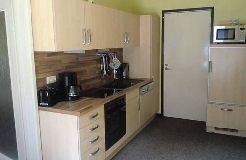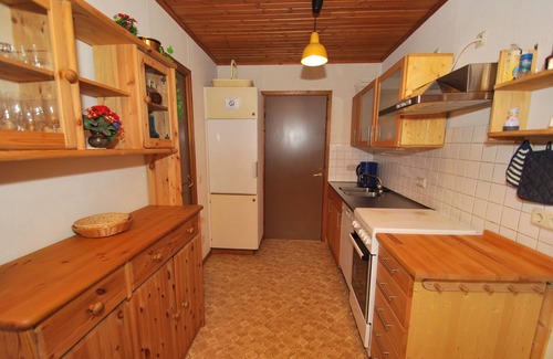 This house offers particularly in the cold season, a cozy living. It is suitable for up to 5 people and consists of a double room, one bedroom with bunk- and single bed, kitchen with dining area and a living room with terrace, bathroom with toilet and shower, cable or satellite TV and radio. Of course, each apartment is equipped with a fireplace / stove, emanating its warmth in the cold season. Prices include: Rent of the completely furnished house, including kitchen equipment, satellite or cable TV, water and parking for one car. A cot is available on request . We recommend that you bring own bed-, table- and kitchen linen and towels. From a 6th Person a surcharge of 5 € per person / per night applies. The visitor's tax per day of stay for children is € 0.80.