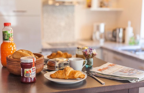 As you settle into this 2-bedroom, 1.5-bathroom rental, you'll find a BBQ grill and a desk. Connect to the free WiFi, or get cozy in front of the TV; there's also a DVD player, a stereo and a music library. The kitchen is equipped with an oven, a stovetop, and a refrigerator, as well as a coffee maker, a microwave, and cookware. And because there's a washer and dryer, you can go a bit lighter on your packing. Other amenities include an ironing board, heating, and a dining table.
