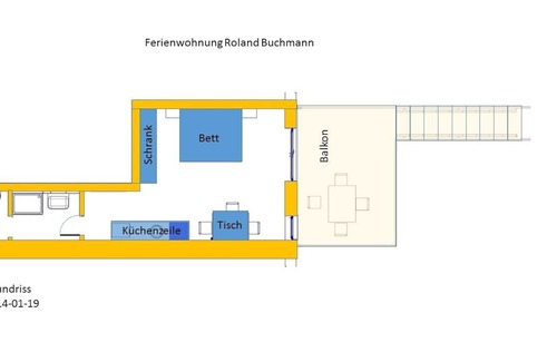 Die Ferienwohnung ist 35qm groß und befindet sich im 1. Obergeschoss. Sie verfügt über einen Wohn-/Schlafraum mit einem Doppelbett, eine voll ausgestattete Küchenzeile, Esstisch, Badezimmer mit Dusche und WC, großer Balkon. Gerne kann der Wellnessbereich, Wintergarten mit Sauna und Infrarotkabine mitgenutzt werden. Eine Liegewiese mit Grillmöglichkeit steht den Gästen zur Verfügung. Ein Kinder Zustellbett wird gerne zur Verfügung gestellt. Haustiere sind in der Wohnung nicht gestattet.